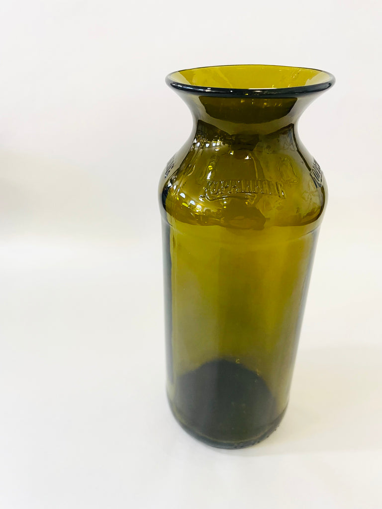 Upcycled glassware made from apothecary POISON bottles, olive oil bottles